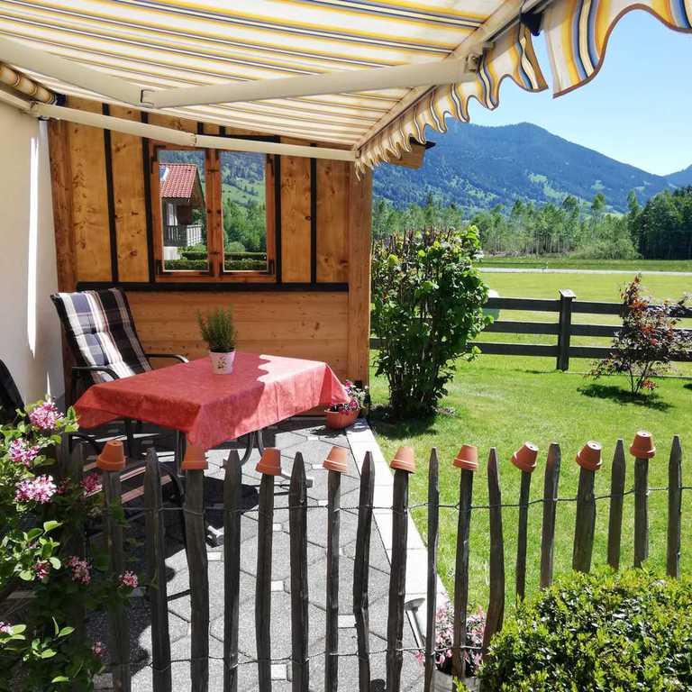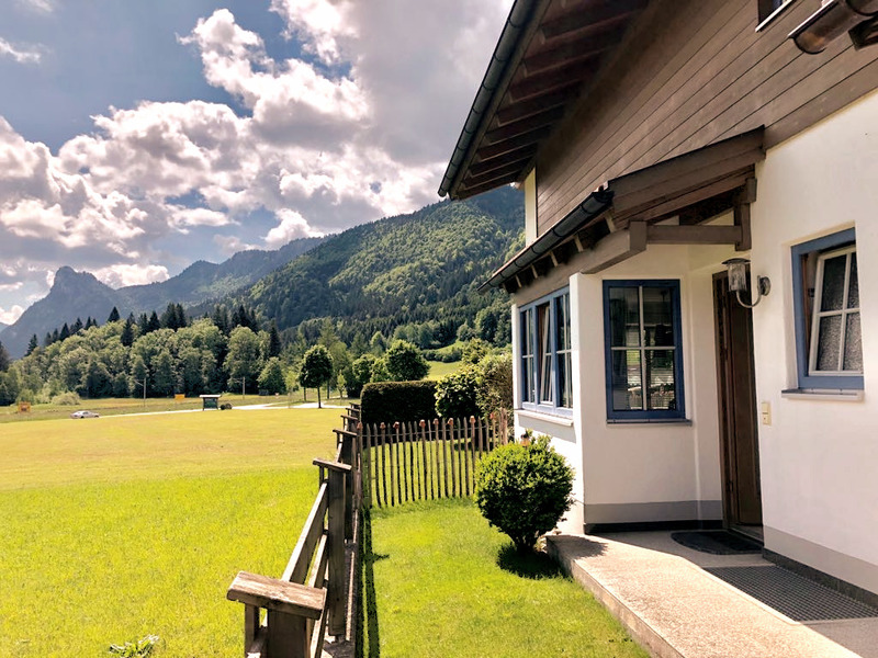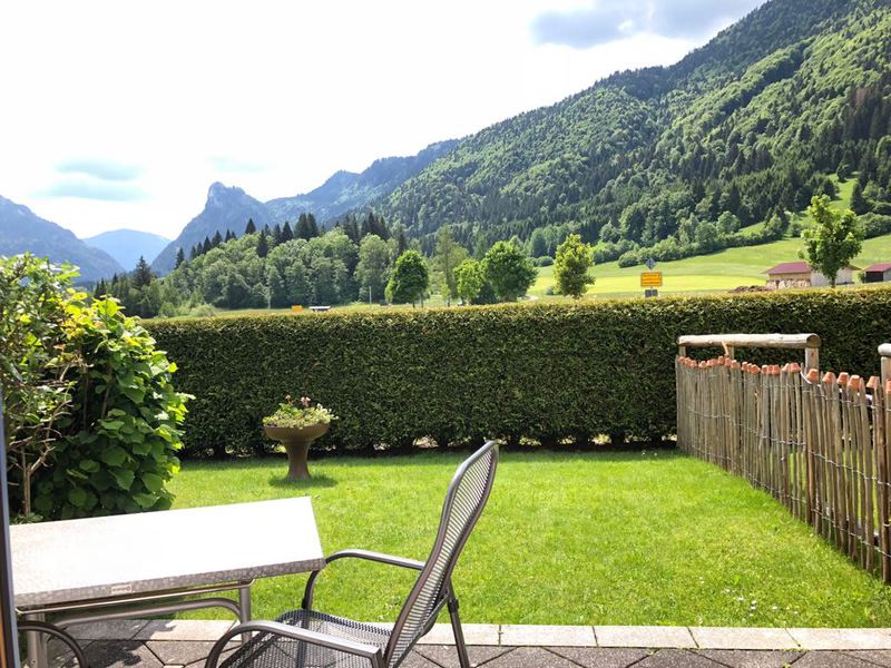 Von Ihrer Glasüberdachten Terrasse mit Garten genießen Sie den Blick auf die Ammergauer Alpen.