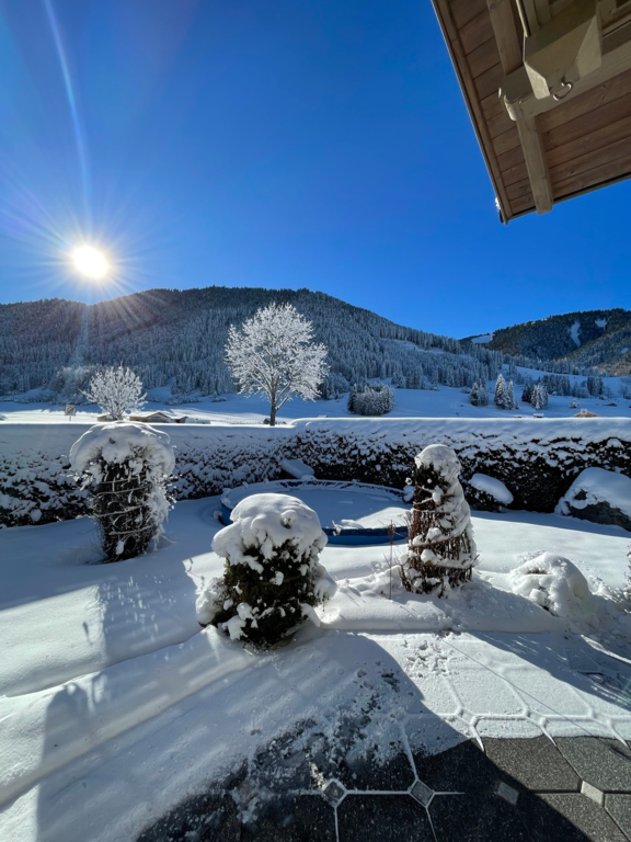Unsere Ferienwohnung befindet sich im Erdgeschoß und bietet Ihnen freien Bergblick.
