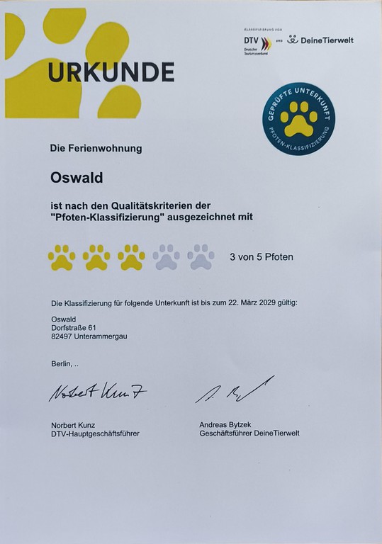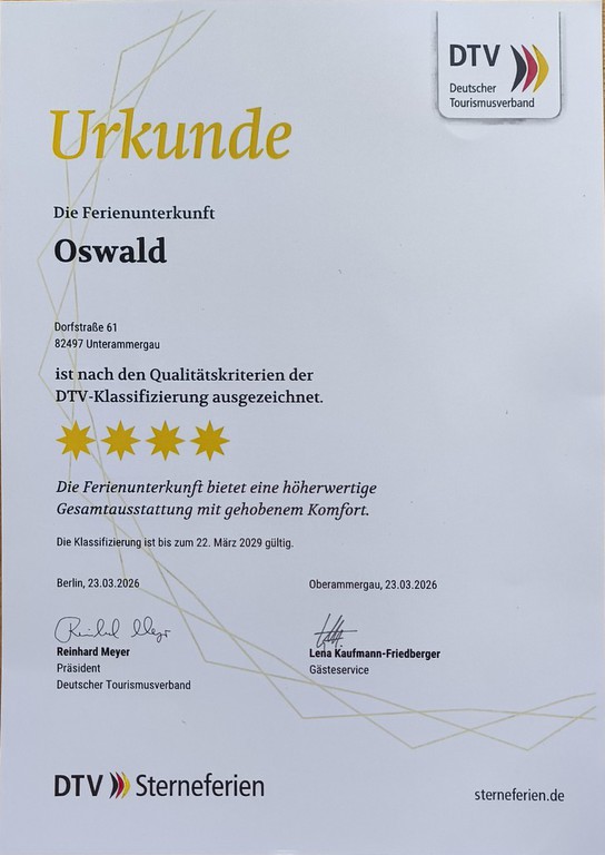 Bitte schauen Sie auf unseren Belegungskalender unter Traumferienwohnung.de Oswald Unterammergau nach der Verfügbarkeit !